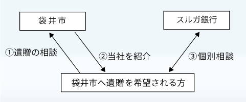 高齢化が進行する中で、お客さまから「将来自分の遺産を地域のために役立てたい」というご相談が増加しています。そうしたお客さまのご意向にお応えするため、スルガ銀行はお客さまが遺産を袋井市へ寄附される際のお手伝いをしてまいります。